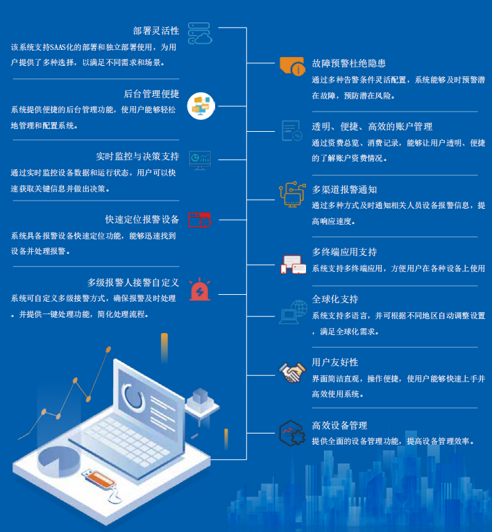 安帕尔安全云平台,作为气体行业专业的“互联网+气体监控”解决方案,通过物联网技术与气体监控的紧密结合,实现用户坐在家中即可实时监控厂房、大型商场、医院、酒店等公共场所,以及住宅小区、小场所等地的气体安全情况。借助分布于各现场的气体检测仪,实时采集气体浓度、设备状态及设备信息等关键数据,为用户提供精准的泄漏源定位服务。用户可随时随地使用电脑、手机、iPad等移动终端登录服务平台,一旦发现异常情况,用户将立即收到警报,以便迅速采取相应措施。